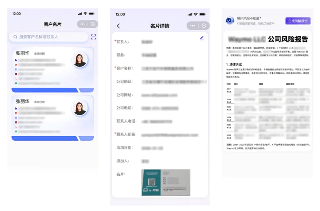 不是所有询价的客户都是真实买家。有些是空壳公司,有些专门套取价格信息。汇有单集成了汇信云盘古AI分析能力,扫描名片后,可以自动对客户企业进行背景筛查,生成风险报告,帮助业务员现场识别低信誉企业或套价商。同时,业务员可以给客户打标签,比如“高意向买家”、“普通咨询”、“需长期跟进”,从而把有限的时间集中在最有价值的客户身上。