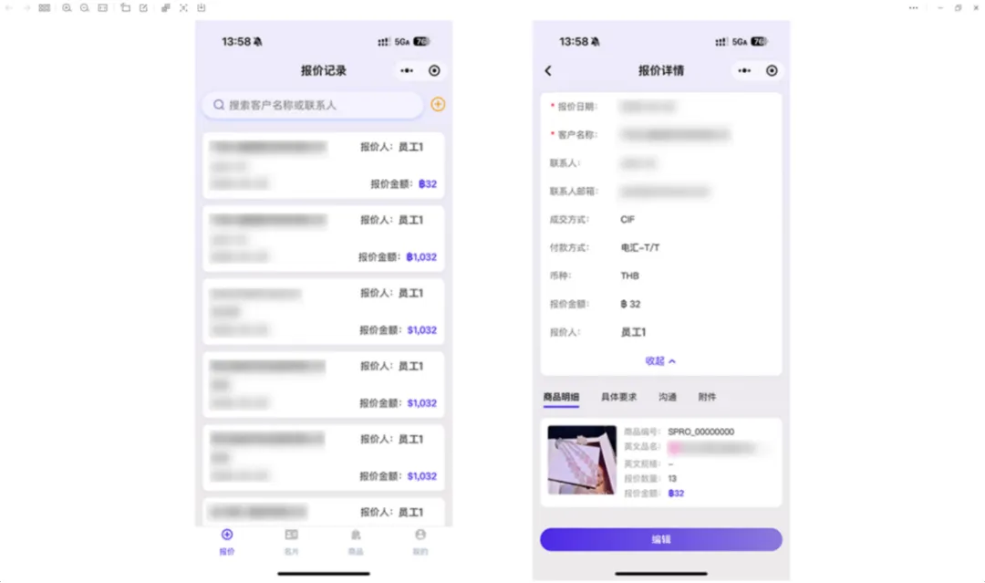 很多业务员展会回来之后,面对一堆名片和模糊的笔记,很难回忆起每个客户的具体需求。汇有单支持在客户建档时,拍照保存客户感兴趣的样品照片,以及现场沟通的场景。这些照片会自动与客户信息、报价单绑定,形成一个“视觉化客户档案”。展会结束后,打开档案就能看到当时客户看了什么产品、问了什么价格、业务员做了什么承诺,后续跟进精准且高效。
