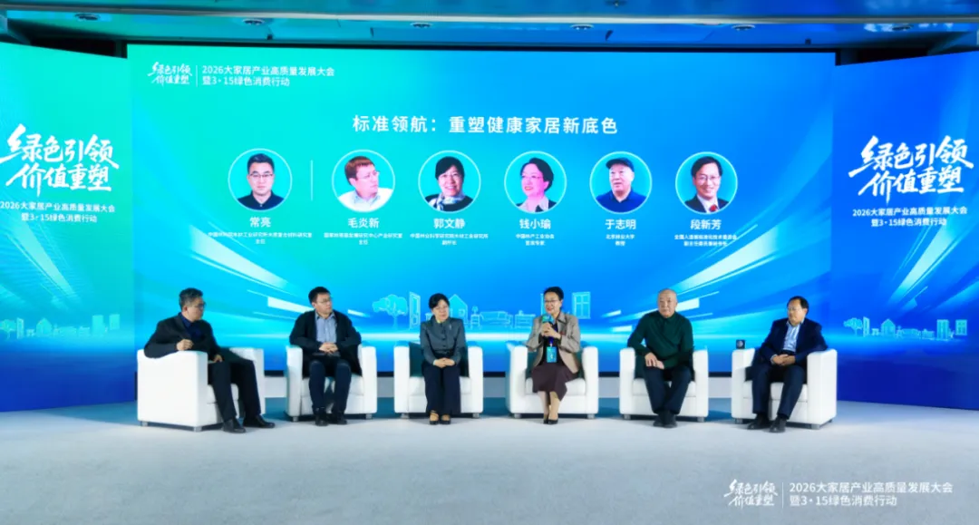 2026年3月31日,以“绿色引领、价值重塑”为主题的2026大家居产业高质量发展大会暨3·15绿色消费行动在北京国际竹藤大厦召开。大会紧扣2026年全国两会精神,立足3·15国际消费者权益日,以国家强制性标准为契机,共探行业价值提升、扩绿增长的实践路径,推动大家居产业高质量发展。