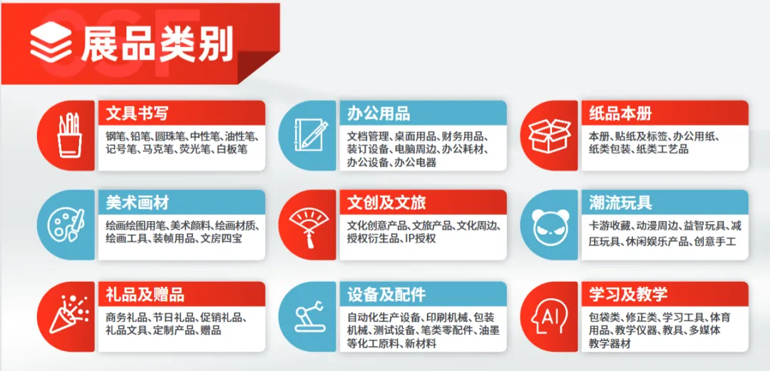 本届展会将呈现文创产品、文具办公、美术画材、学生用品、礼品赠品、潮流玩具、二次元周边等十余个品类,涵盖全产业链的数万件展品,将吸引来自国内外超过10万人次专业观众,实现“内贸+外贸”、“线上+线下”、“新品+新趋势”、“专业论坛+场景体验”等多维度交流,为企业创造价值,为行业赋能。从文创出海,到文化出海。随着我国国力的日益强盛,文化与文创正从自发走向自觉,从零散走向系统,成为展现国家软实力、参与全球文明对话的重要战略。CSF文化会为国内文化文创用品企业提供更多拓展国际市场空间的机会,助力企业开辟全球化发展路径。