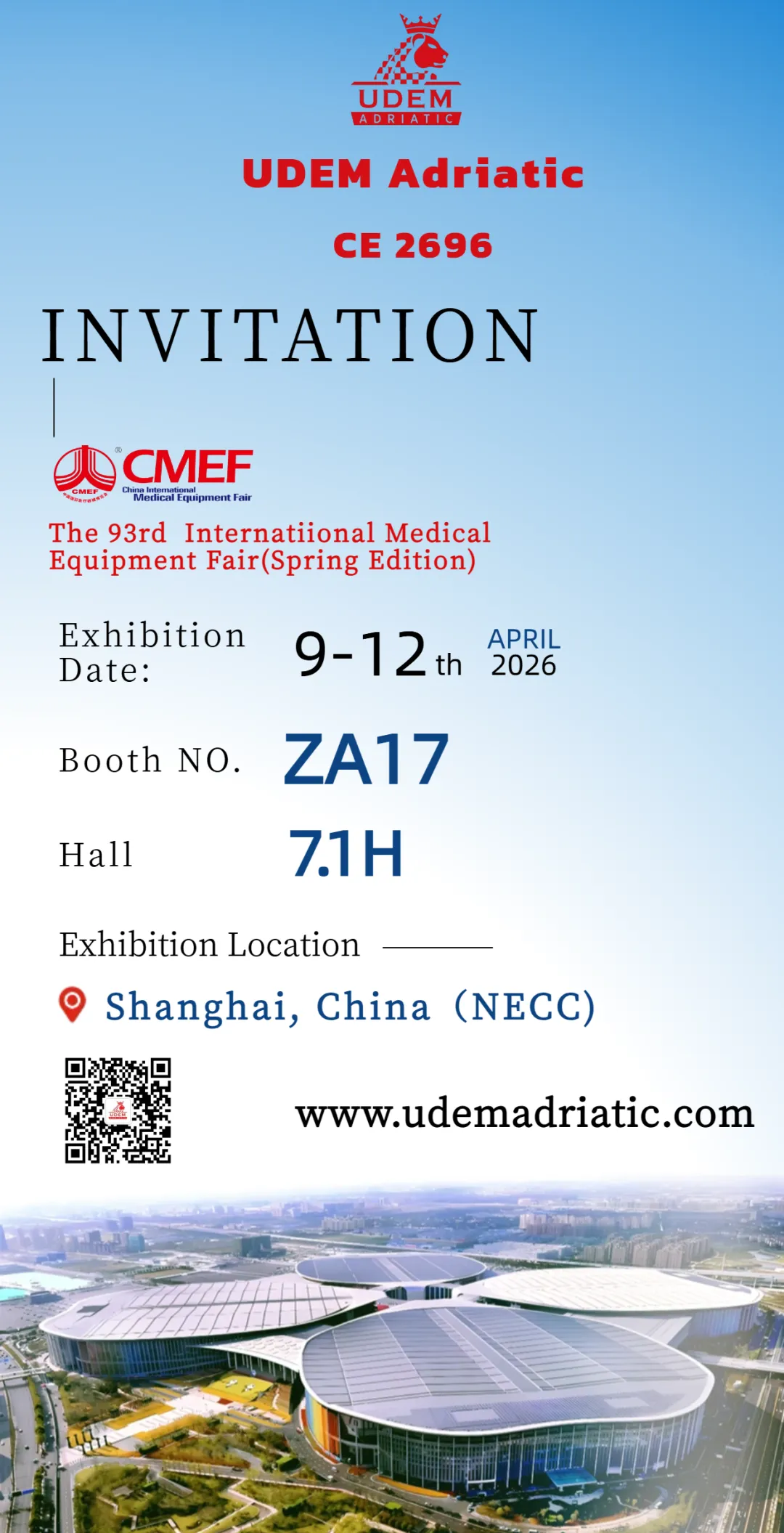 『展会邀请』UDEM Adriatic(NB 2696)与您共赴第93届中国国际医疗器械博览会(CMEF)