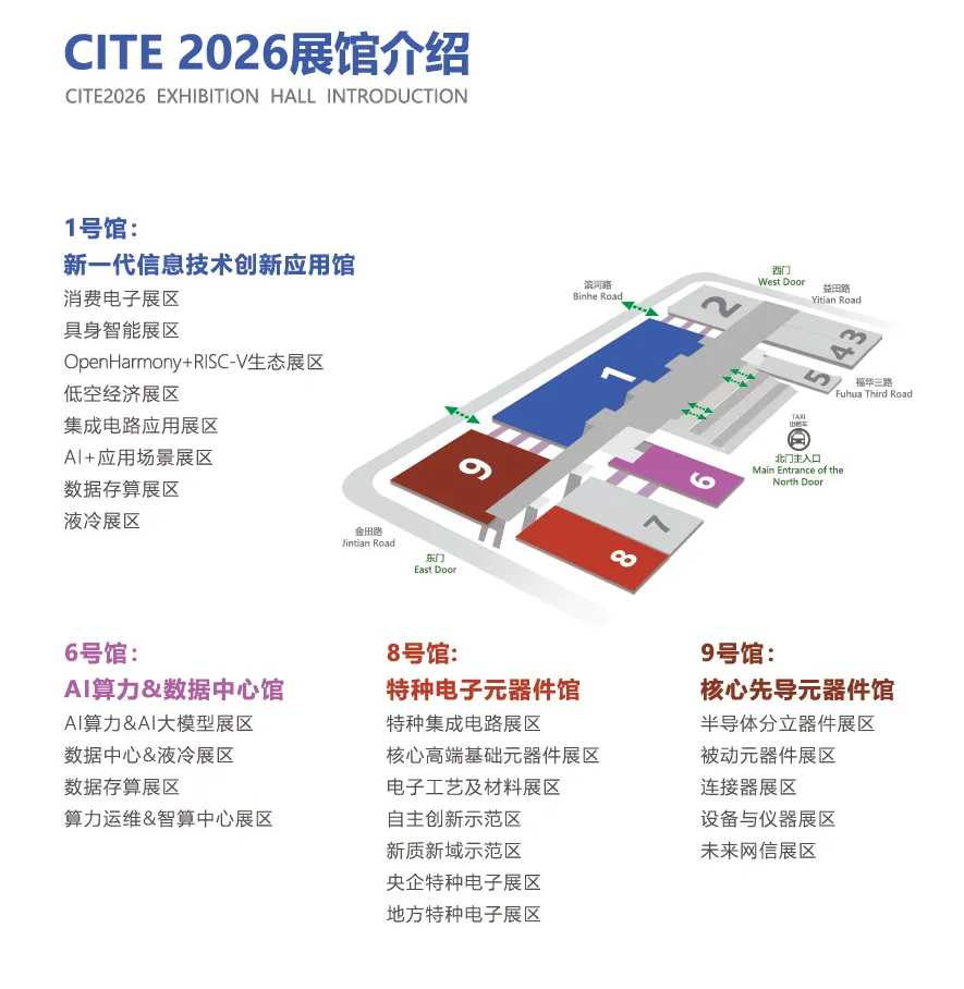 CITE 2026聚焦消费电子、AI+应用场景、具身智能、AI大模型/智算中心、低空经济、集成电路、电子元器件、特种电子与两用电子等前沿领域,汇聚超1,000家行业领军企业同台竞技,展览面积达80,000平方米,预计将吸引逾60,000名专业观众共襄盛举,共探产业新机遇,擘画科技新蓝图!