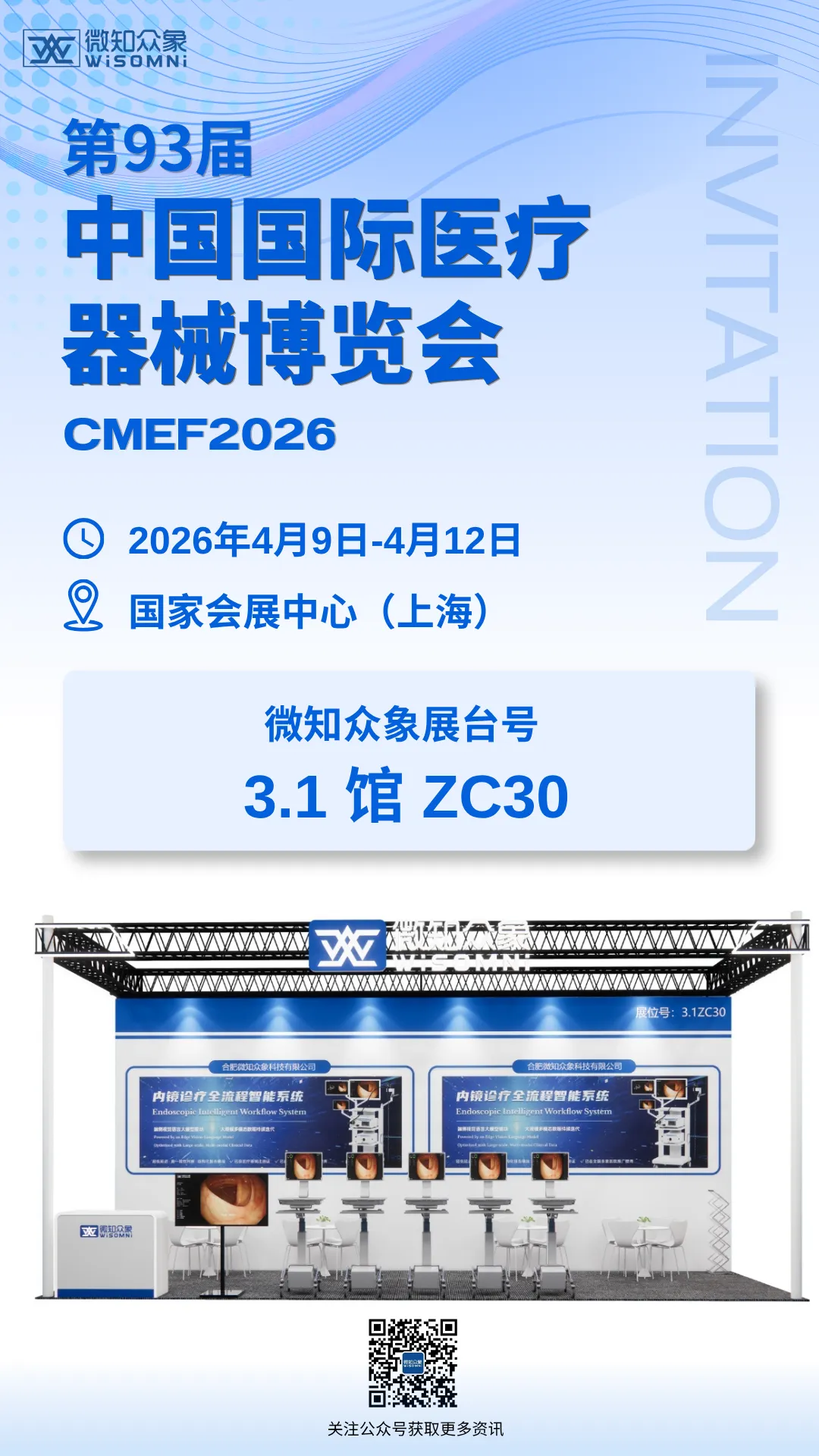 2026 年4月9日--4月12日,第93届CMEF中国国际医疗器械博览会,即将在上海国家会展中心盛大启幕。合肥微知众象科技有限公司,作为聚焦消化道早瘟精准筛查、深耕高端医疗装备自主研发的创新企业,将携消化科全系列多模态智能内窥成像产品重磅亮相3.1馆 ZC30,全面展示国产品牌在高分辨成像、“无创活检”、AI智能辅诊以及端侧视觉语言大模型领域的突破性进展,与海内外行业伙伴共探医疗创新新未来。