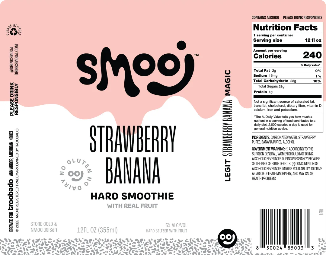 这是一款添加了多汁的草莓和香蕉酿造的水果果昔硬苏打。