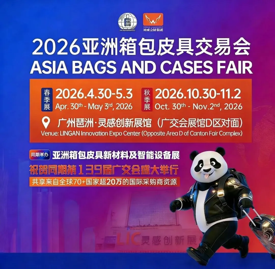 2026亚洲箱包皮具交易会将于4月30日在广州琶洲·灵感创新展馆盛大开启。我们受邀参展。2026亚洲箱包皮具交易会,正是为你量身打造——以全产业链生态链接全球买家,助力中国品牌走向世界。