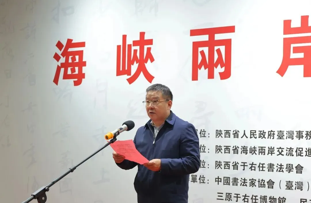 开幕式上,王春霄宣布展览正式开幕。侯典政在致辞中指出,两岸文化同根同源、同文同种,书法艺术作为中华文化的重要载体,是连接两岸同胞心灵的精神纽带,此次展览为陕台文化交流注入新的活力,必将进一步增进两岸同胞的情感共鸣。清渭楼美术博物馆馆长郭刚致欢迎辞,对两岸嘉宾的到来表示诚挚欢迎,并介绍了博物馆在传承中华传统书画艺术、促进文化交流方面的实践与成效。陕西省于右任书法学会会长张强介绍了展览筹备历程,台湾中国书法学会理事长陈铭镜代表台湾书法家致辞,表达了对中华文脉的珍视及深化两岸艺术交流的热切期许。于右任先生家属代表、陕西省于右任书法学会副会长于媛深情追忆了先生的生平事迹、艺术成就与赤诚爱国情怀,引发全场嘉宾强烈共鸣。