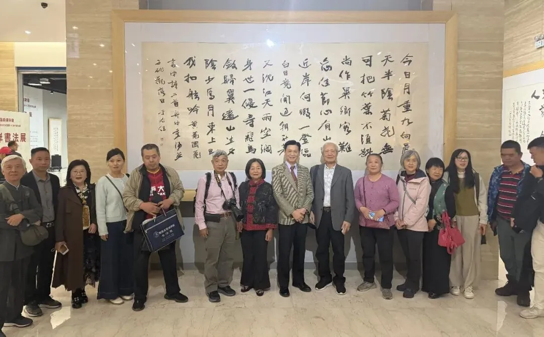 开幕式后,台湾书法家代表团专程参观了清渭楼美术博物馆馆藏陈列。馆内丰富珍贵的艺术收藏令嘉宾们深感震撼,大家徜徉于历代书画珍品之间,细细观摩、交流心得,流连忘返,并对博物馆在收藏、保护与展示方面的成效给予高度评价。其中,于右任先生早年创作的八尺巨幅书法真迹尤为引人注目,作品气势恢宏、笔力千钧、墨韵生动,充分展现了先生深厚的书法造诣与独特艺术风格。在场书法家凝神静观、深受触动,纷纷轻声诵读作品内容,品味文辞意境与线条力量,并在巨作前合影留念。