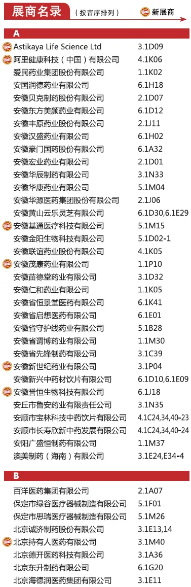 展商列表|87届全国药品交易会展商列表