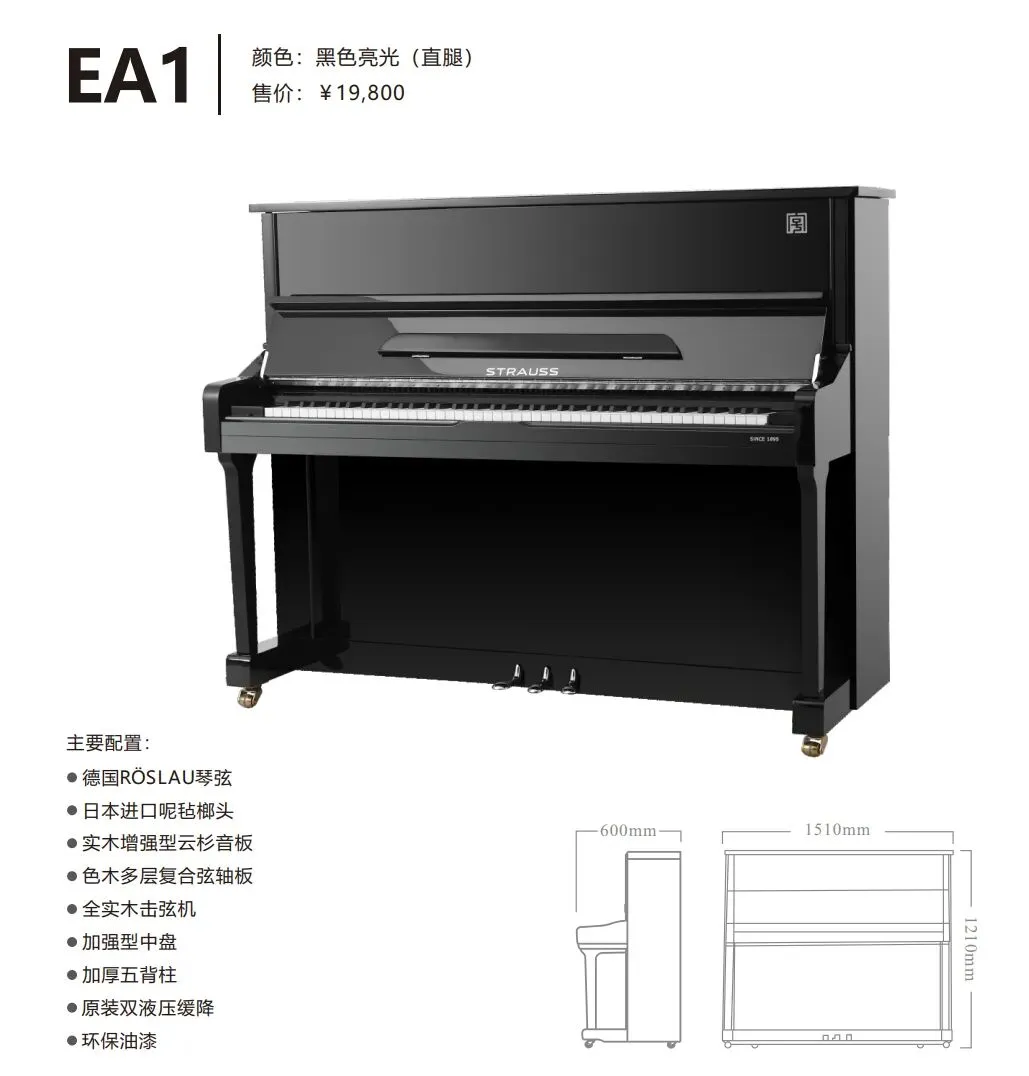施特劳斯欧美系列,其产品加工和装配工艺达到欧洲标准,出口至海外各国,备受全球各地尤其是欧美市场顾客的青睐。其优雅纯净的声音源于声学组件的特殊设计,发音清晰、音色丰富,拥有精准的控制度。无论弹奏刚劲有力的乐章,还是抒情优美的歌曲,都能得到恰如其分的表现力!