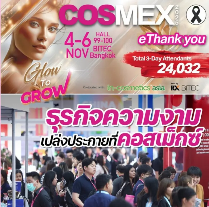 上一届COSMEX展会(2025年9月)在曼谷BITEC展馆成功举办,延续了历届展会的专业性与影响力,创下多项亮眼成果,成为东南亚美妆供应链领域的年度焦点,充分彰显了展会的核心价值。