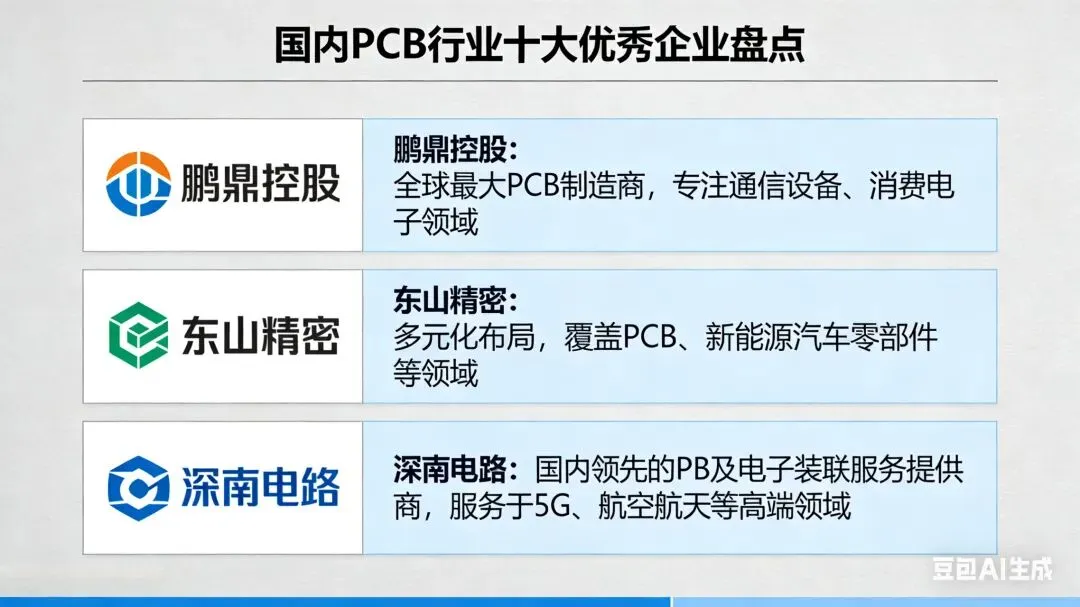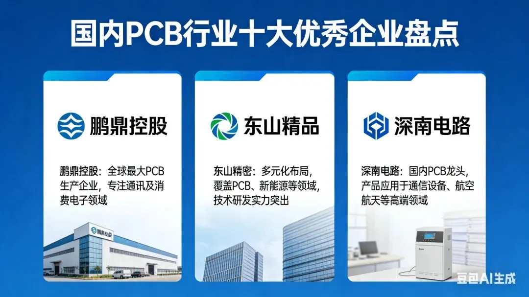 PCB(印制电路板)作为电子行业的核心基础部件,被誉为“电子产品之母”,其技术水平与产业规模直接决定了电子制造业的发展高度。近年来,国内PCB产业依托技术突破与产业链完善,涌现出一批全球竞争力强劲的头部企业,覆盖柔性线路板、高多层板、封装基板、高速通信板等全品类赛道,在消费电子、AI服务器、汽车电子、通信设备等核心领域占据重要地位。以下为国内PCB领域十大优秀企业及其核心优势解析。