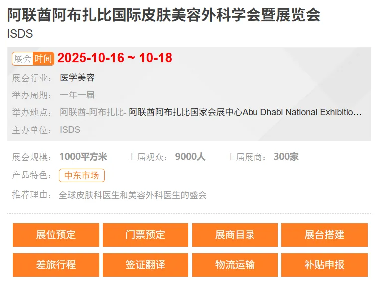 阿联酋阿布扎比国际皮肤美容外科学会暨展览会