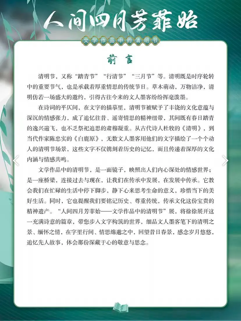 在清明节到来之际,我们特别策划了本展览,透过文学作品的独特视角,探索这一传统节日蕴含的深厚文化与情感纽带。