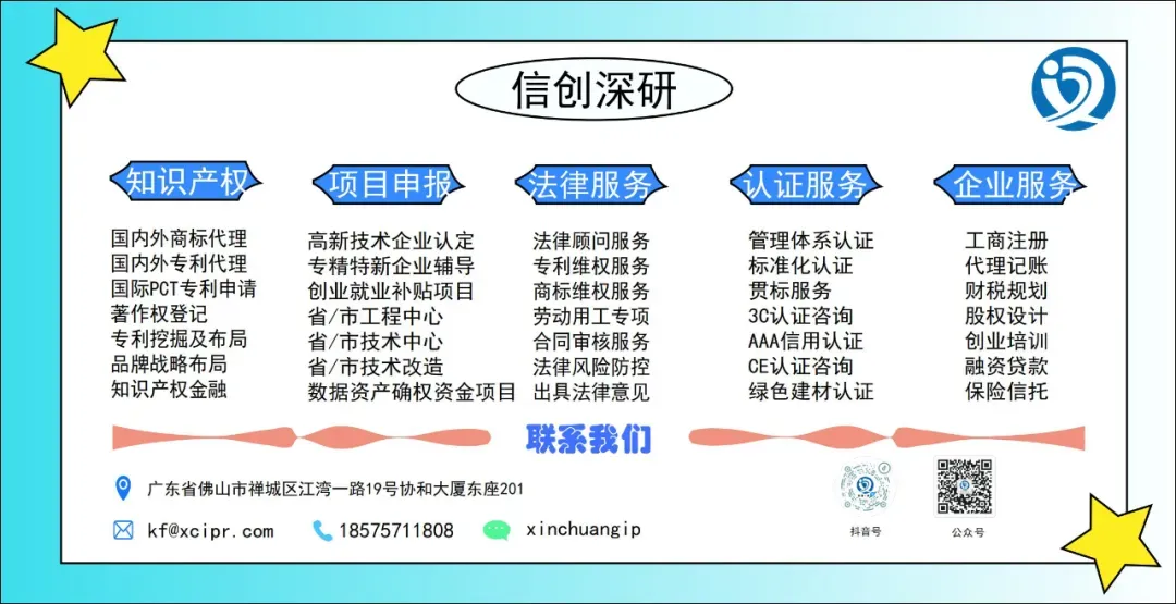 声明:图文版权归原作者所有,如有侵权,请联系删除。信创知识产权微信公众号刊载此文,是出于传递更多信息之目的。部分素材来源于网络,若有来源标注错误或侵犯了您的合法权益,请及时与我们联系,我们将及时更正、删除或依法处理。
