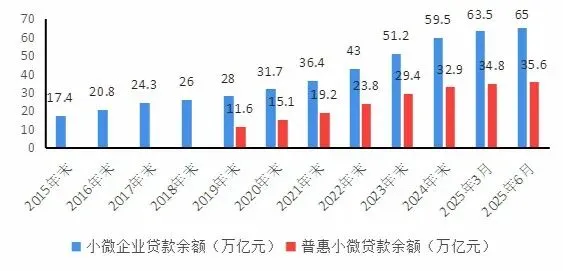 截至2025年二季度末,我国小微企业贷款余额已达65万亿元,在企业贷款中的占比从十年前的30.4%提升至38.2%。 而截至2026年2月末,仅普惠小微贷款(面向普惠金融领域的小微企业贷款)余额就达到37.31万亿元,同比增长11.6% 。