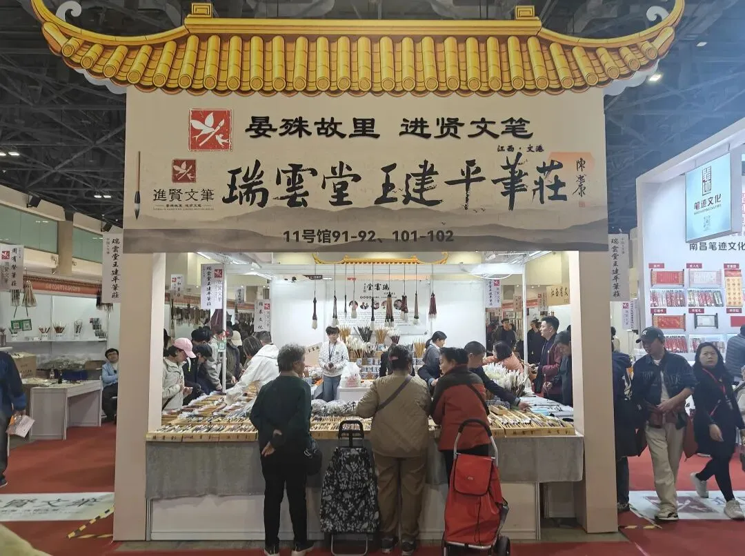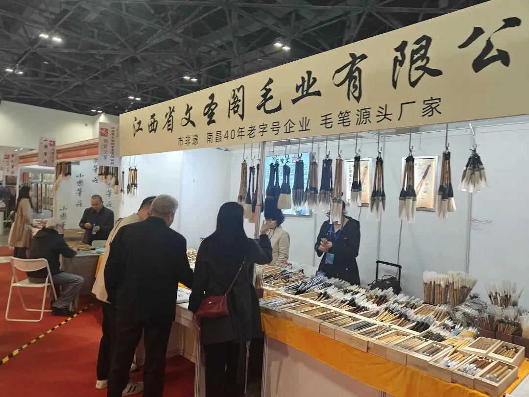 展会现场,“晏殊故里・进贤文笔”主题展区人气爆棚。从非遗大师手作名笔到学生书写新品,千年工艺与现代创新完美融合,得到书画名家与采购商的广泛关注与认可。