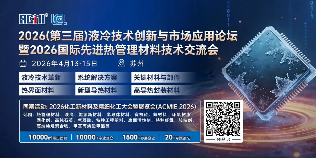 “2026(第三届)液冷技术创新与市场应用论坛暨2026国际先进热管理材料技术交流会”将于2026年4月13-15日在苏州召开。