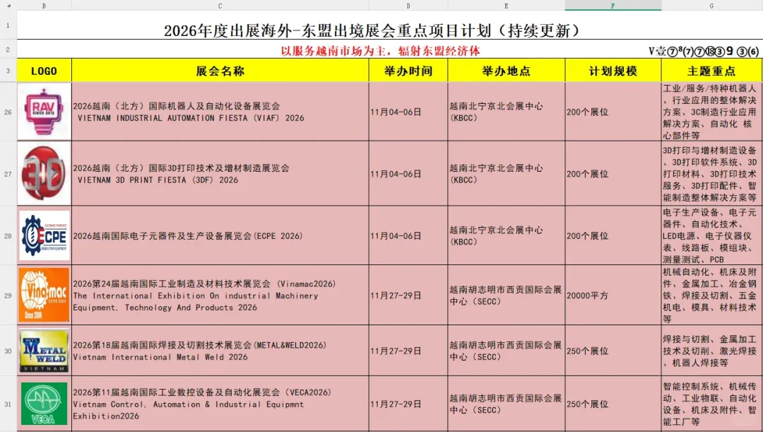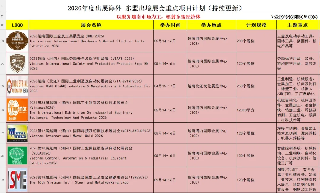 2026越南展会排期表+参展全流程指南,商务人士别错过!