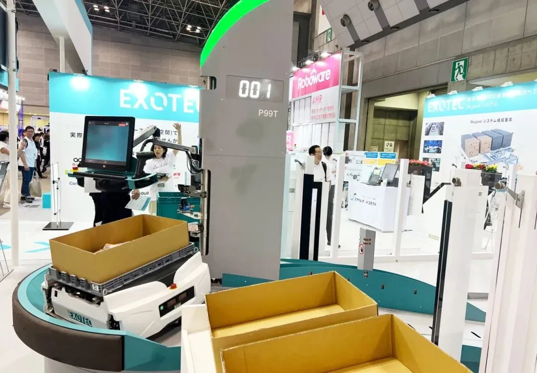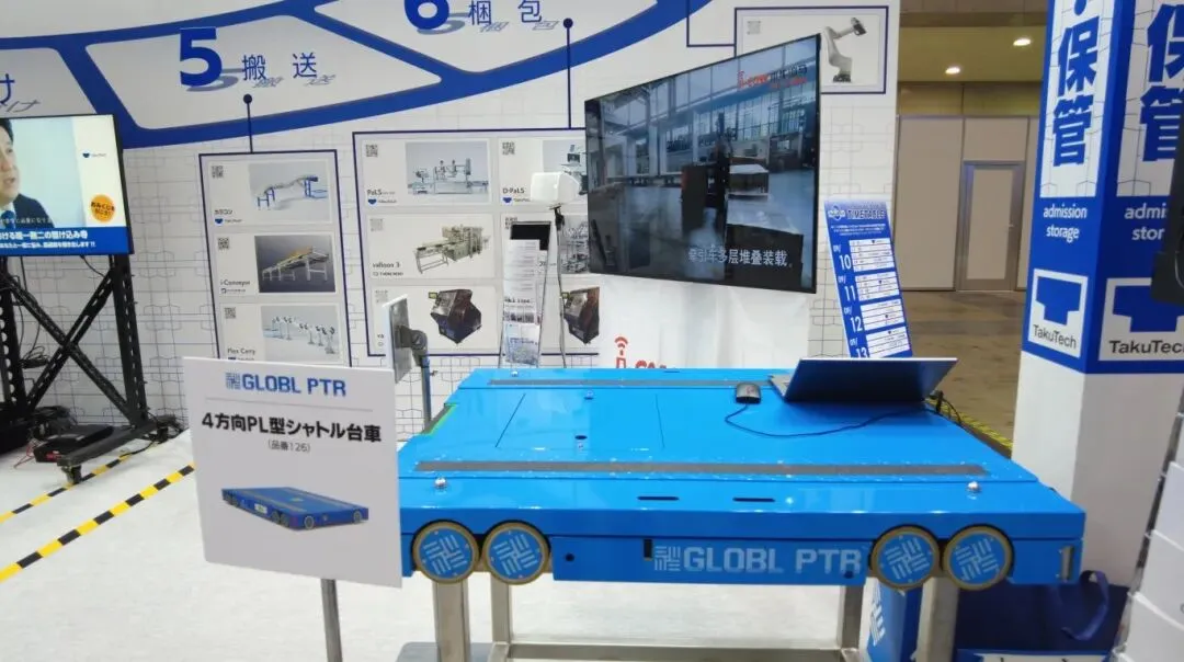 相比于四向穿梭技术,中国企业在机器人技术方面的展出亦十分出彩,除了上文提及的海柔创新外,极智嘉、海康机器人、牧星智能、快仓等成为展会上的焦点之一。由于近年来日本深受老龄化和低生育率的困扰导致的人手不足,与物流中心拆零订单的增加所产生的矛盾,不断推动着日本物流业对于GTP(货到人)技术的发展和应用。因此,除了中国企业之外,日本也在积极发展本土机器人技术和引进欧美等国际先进技术。