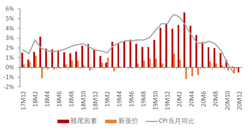图7.1 CPI同比的翘尾因素与新涨价因素