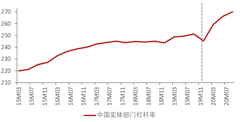 图9.1 中国实体部门杠杆率
