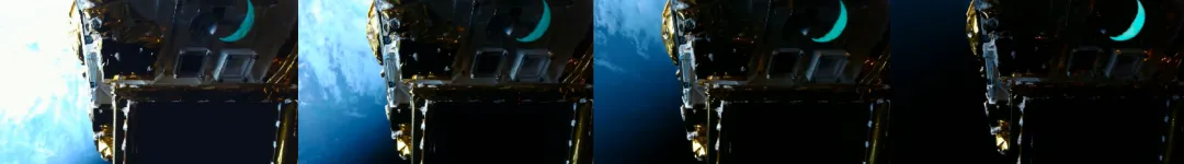 另一件作品《再一次,越过地平线》则将这种尺度转换进一步推向宇宙维度。艺术家将月陨石研磨为粉末并铸成弯月形态,使其随卫星进入轨道。当它进入地球阴影、远离太阳光照时,荧光材料会释放出微弱光芒,一个极其微小的“月亮”因此在地球周围缓慢运行。作品将“地平线”这一传统的视觉界线转化为一种轨道结构:越过地平线,不再意味着消失,而是进入另一种不可见的运行状态。