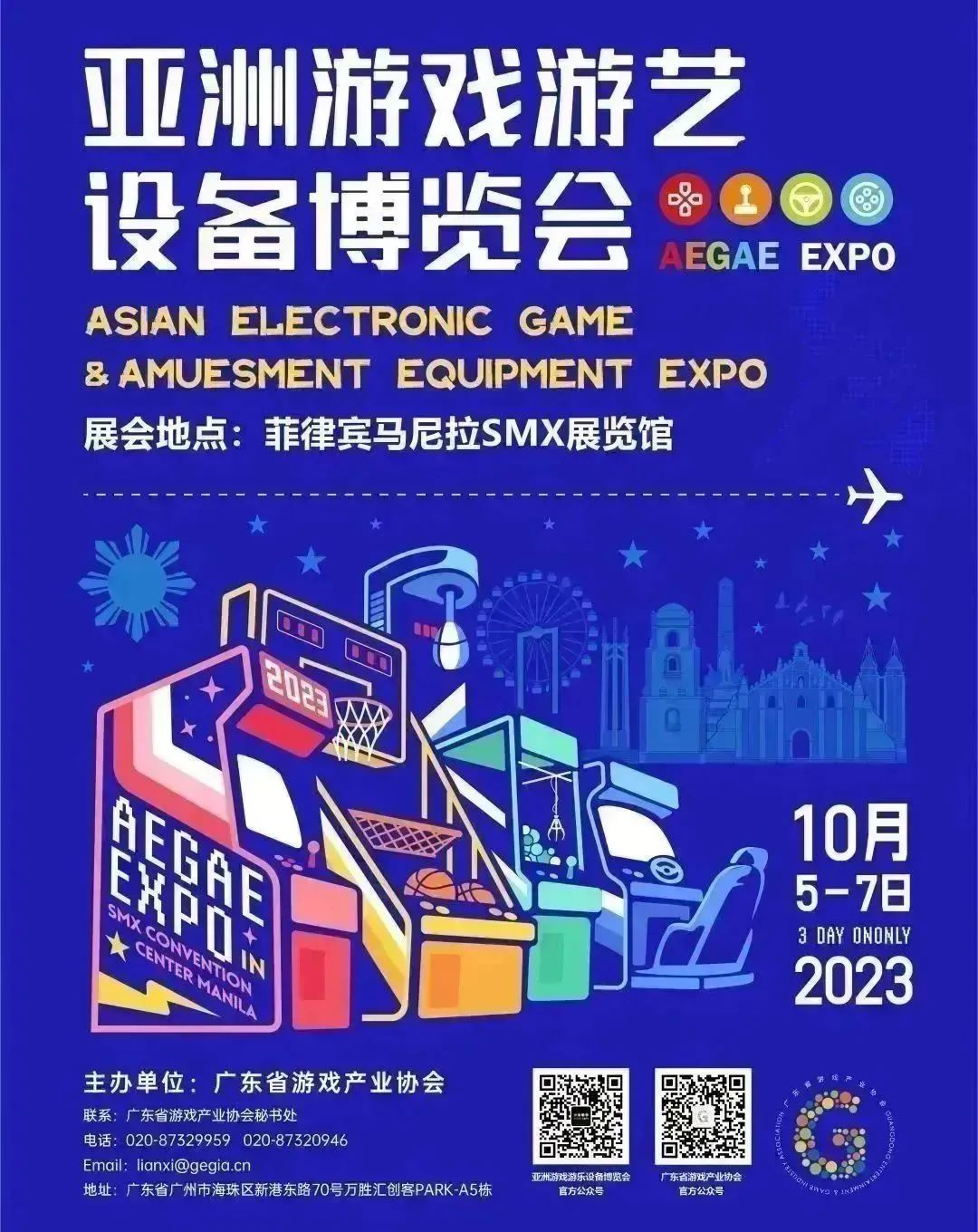 为加强与“一带一路”沿线国家的经贸合作,拓展东南亚蓝海市场,带动广东游戏游乐设备产业出海,广东省游戏产业协会将于2023年10月5—7日在菲律宾首都马尼拉举办亚洲游戏游艺设备博览会!