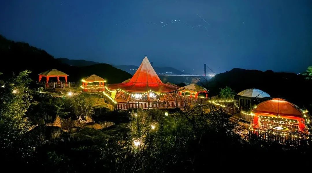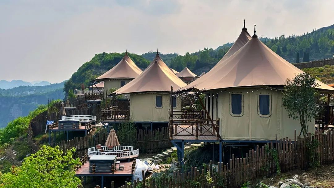 营地占地100亩,建设在乌江源百里画廊、化屋之巅的悬崖上、鸭池河西岸。住在这里,早晨,太阳从鸭池河大桥升起,美轮美奂;晚上,星空和月亮挂在天际,特别美。