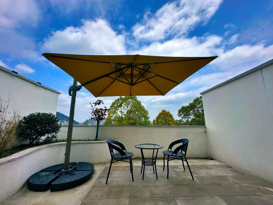 双河客栈坐落在双河谷景区内,是在原有黔北民居基础上改建而成,保留了黔北民居特色的同时,还融入了地中海与田园风格,整体给人一种古典优雅的感觉。