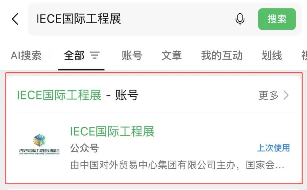 请各位观众通过微信搜索并关注“IECE国际工程展”公众号,点击私信→观众注册完成实名注册,提前注册可避免现场排队,快速入场逛展: