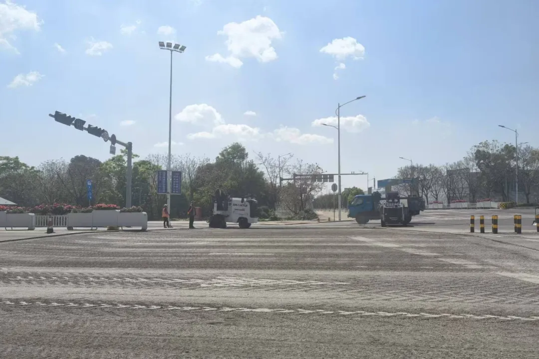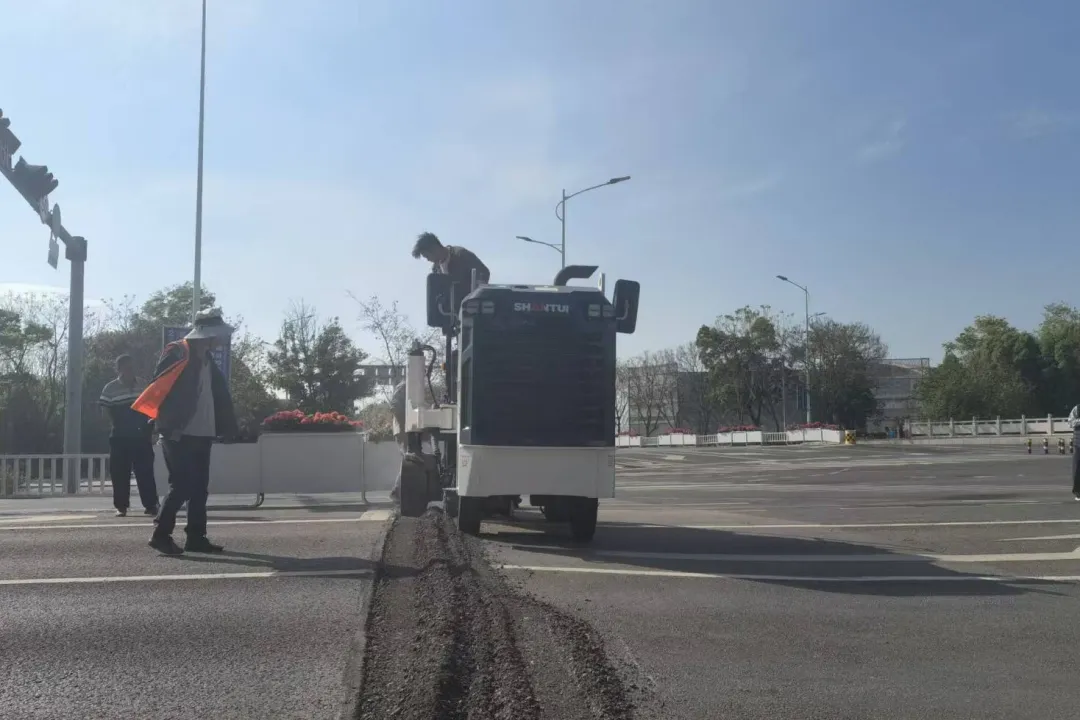 2026年4月2日至3日,睿建公司组织机械、人员材料进场,对会展西路(会展北路至巫家坝路段)沥青路面病害进行铣刨、清扫、摊铺等规范化作业,高效完成路面修复工作,及时消除道路安全隐患,有效保障市民出行安全与道路通行顺畅。