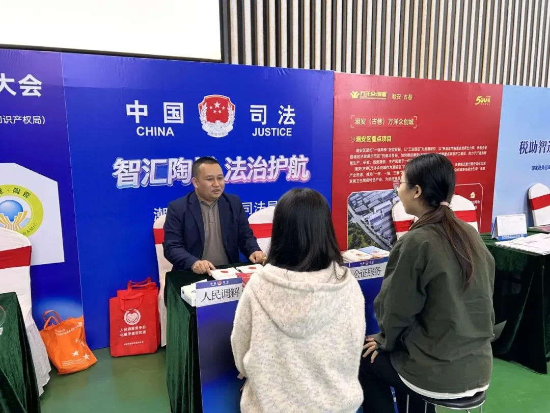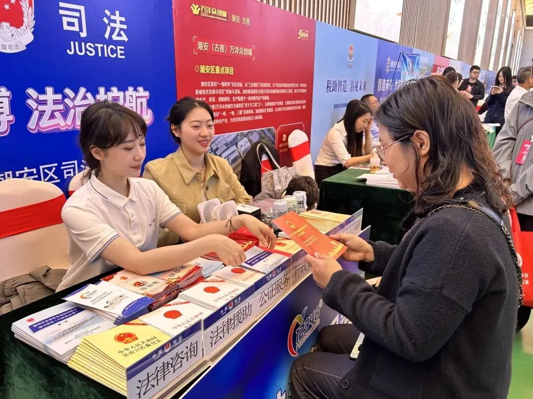 为助力第四届潮安智能卫浴博览会高效有序开展,营造安全、规范、和谐、法治化的展会营商环境,潮安区司法局延续往年法律服务经验,整合优质法律服务资源,组建专业法律服务团队进驻博览会现场,设立“公共法律服务工作站”,以“一站式、零距离、专业化”的服务模式,为参展企业、群众提供全方位法治保障,为展会全程平稳有序运行保驾护航。