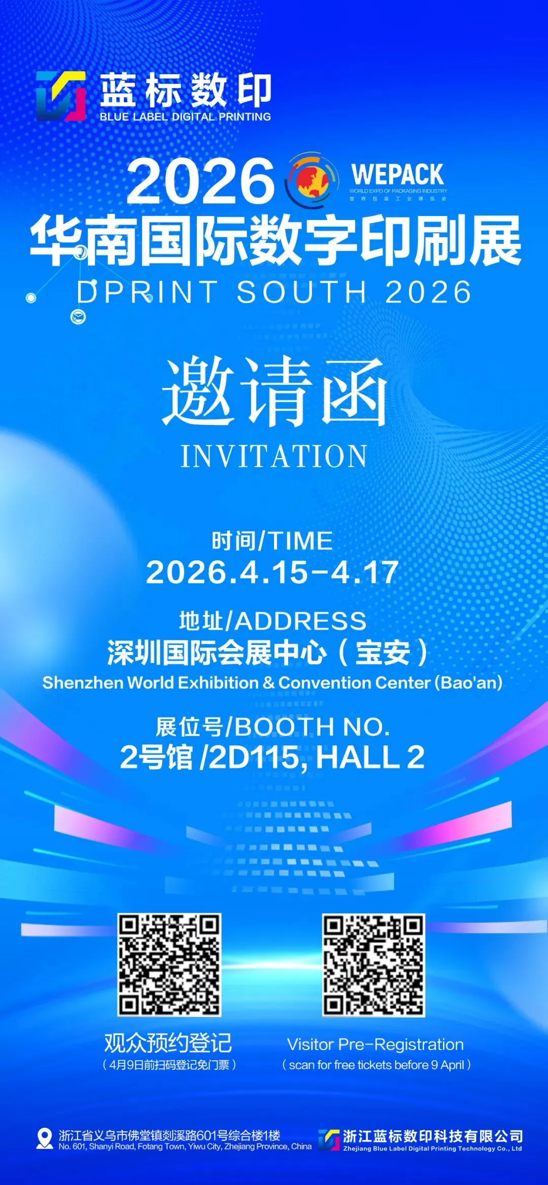 继3月广州标签展后,浙江蓝标数印科技有限公司(以下简称“蓝标数印”)马不停蹄,即将携重磅升级的数码标签解决方案,亮相2026年4月15日-17日在深圳国际会展中心(宝安新馆)举办的2026华南国际数字印刷技术展(DPrint)暨华南国际新标签技术展