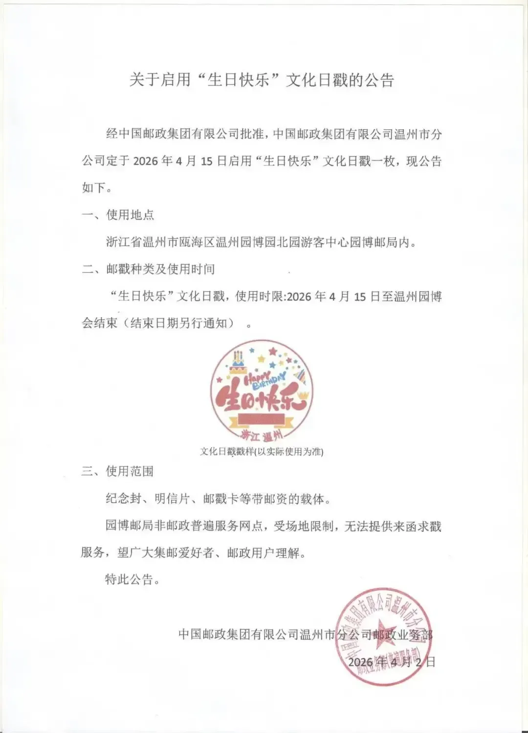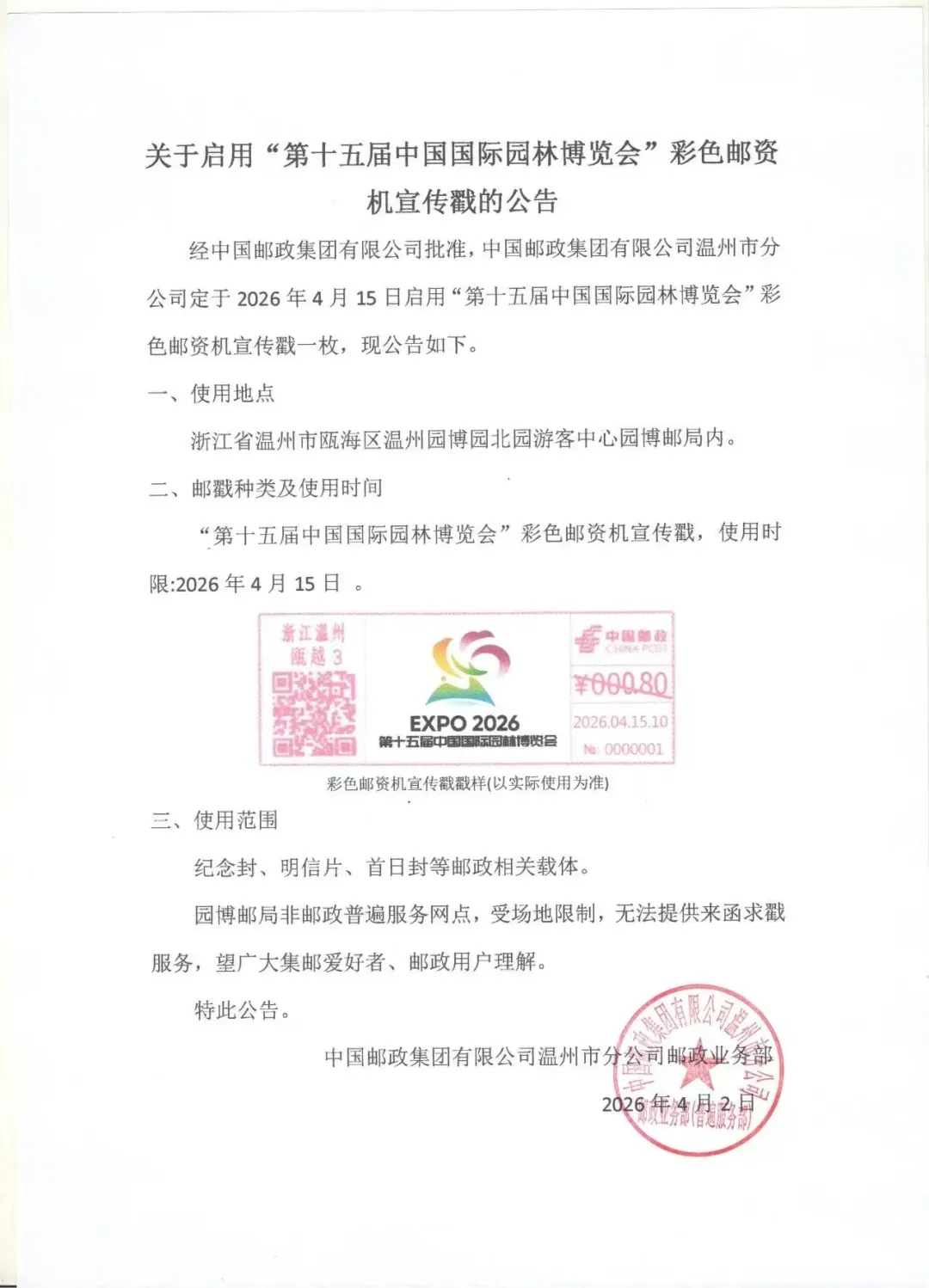 中国邮政定于2026年4月15日发行《