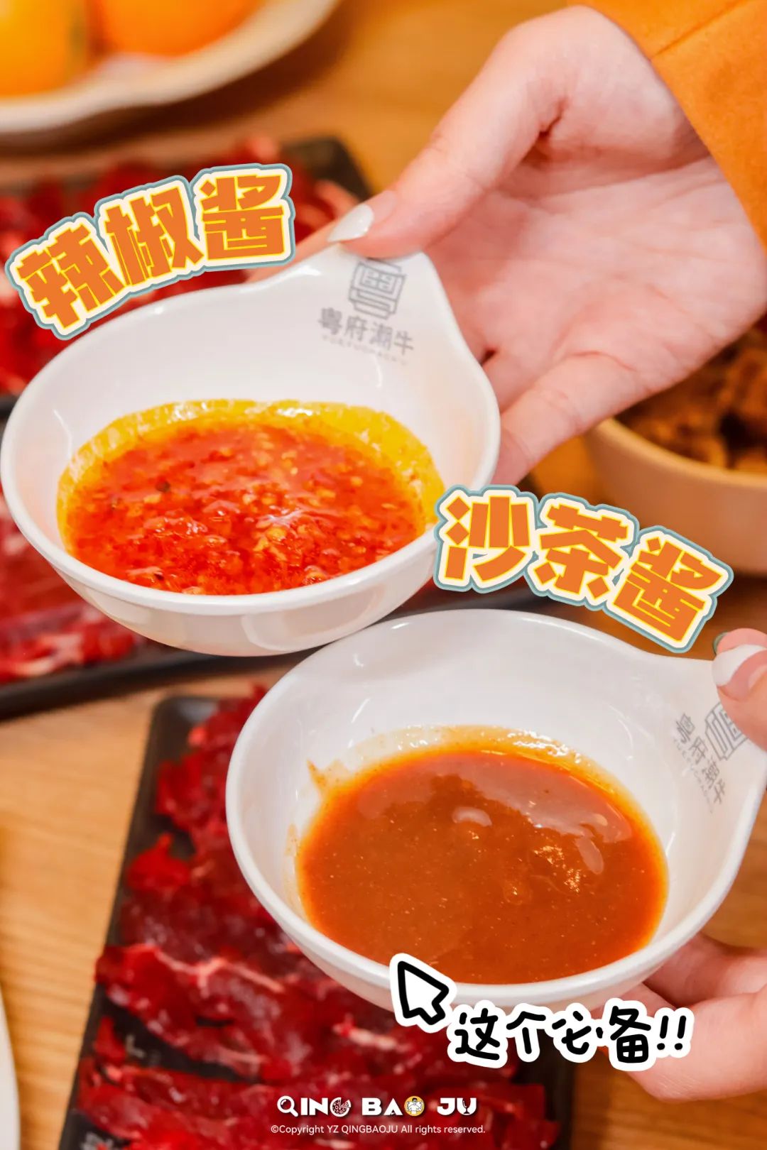 潮汕牛肉火锅的灵魂CP是沙茶酱,能最大程度的激发牛肉的鲜味,如果不太习惯它的味道,那就再配一碟辣椒酱,足矣!