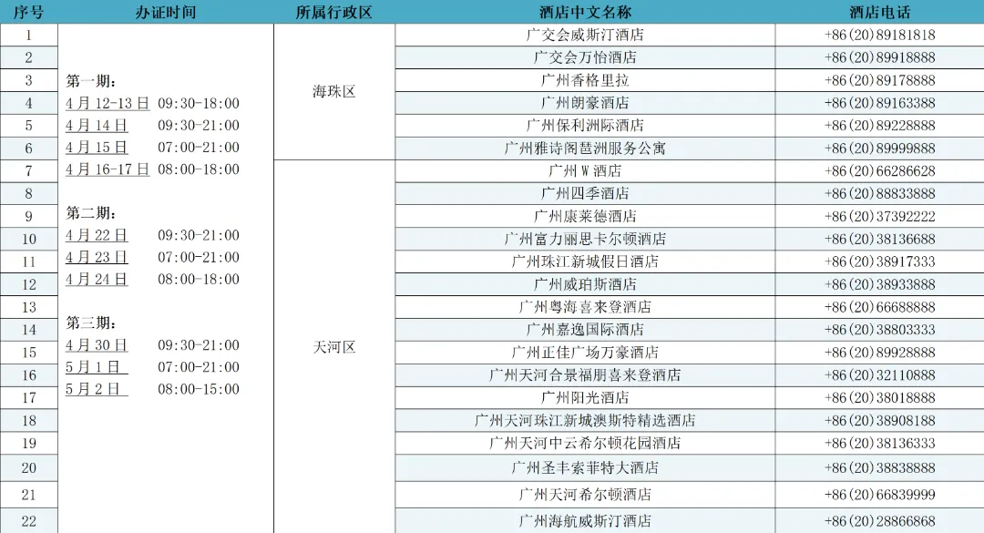 1.上述办证酒店信息以广交会官网最新发布为准。