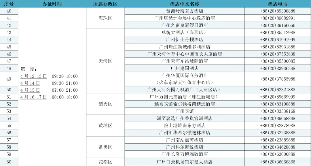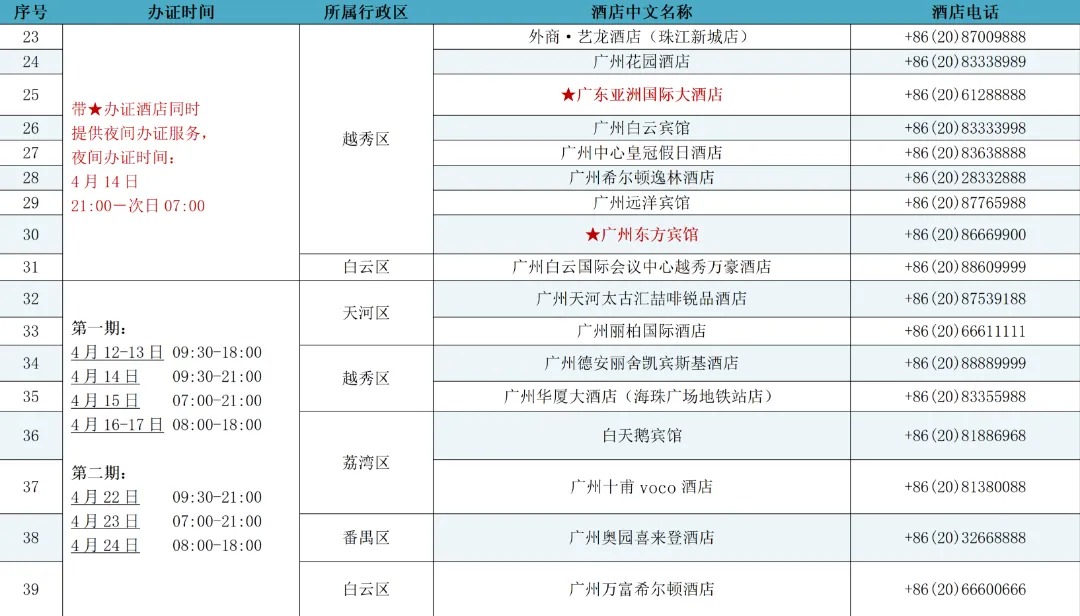 ②酒店就近速办:旅途太累想先回酒店?广州市内60家广交会指定办证酒店也设有办证点,点随人走、就近办理,休息办证两不误!