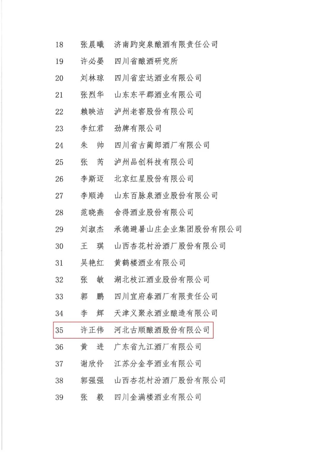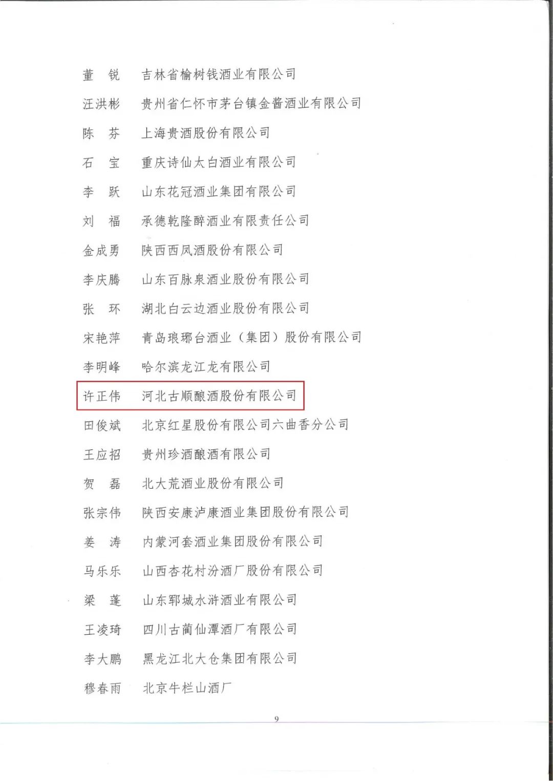 近日,中国食品工业协会发布了《关于聘任的第十届白酒评委的通知》。河北古顺酿酒股份有限公司科研所所长许正伟参加了此次白酒国家评委换届考评,与全国各省选拔出的酒业精英激烈角逐,凭借扎实的白酒理论功底和卓越的职业实操技能脱颖而出,获聘为第十届白酒国家评委。