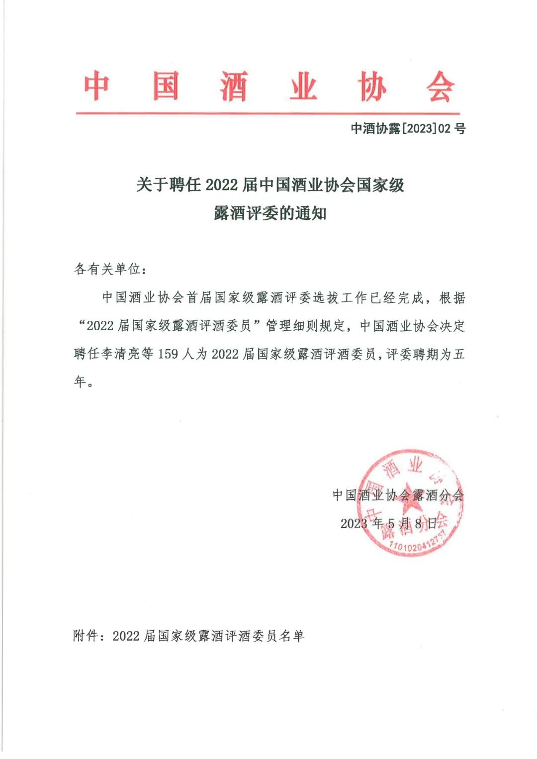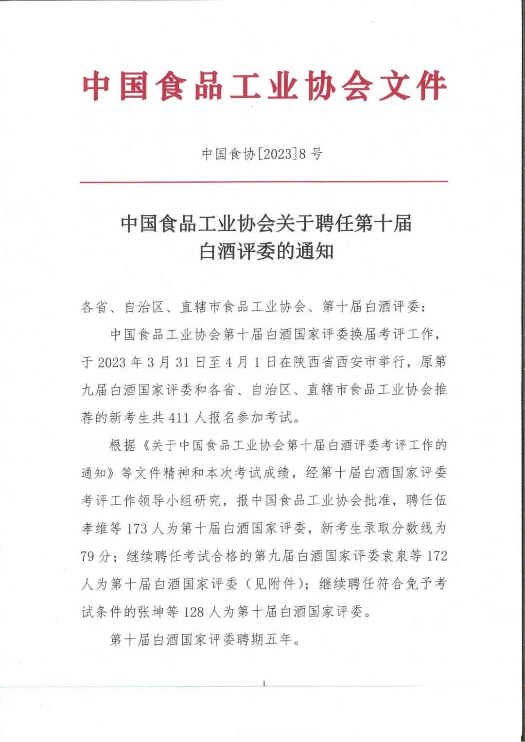 捷报频传,在中国酒业协会首届国家级露酒评委选拔中,其发布的《关于聘任2022届国家级露酒评委的通知》许正伟再次榜上有名,被聘任为2022届国家级露酒评委。
