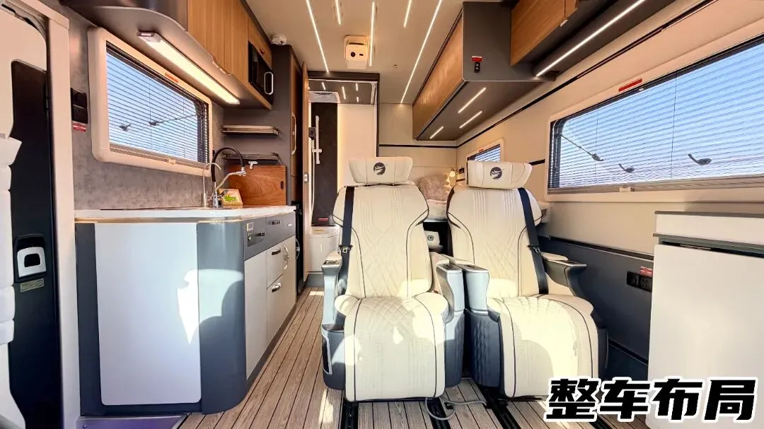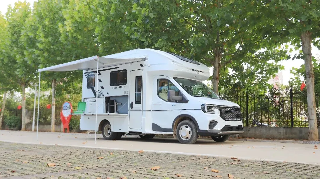 车身采用一体成型工艺,搭配高分子复合材料与客车级笼式骨架结构,兼顾坚固性与耐用性,彻底告别车身开裂、鼓包烦恼。嵌入式手电一体房车专用遮阳棚,驻车时可快速展开,2.5m×3.5m加长尺寸延伸至中门区域,全面覆盖车身侧面,瞬间拓展户外休闲空间,露营、休憩更惬意。