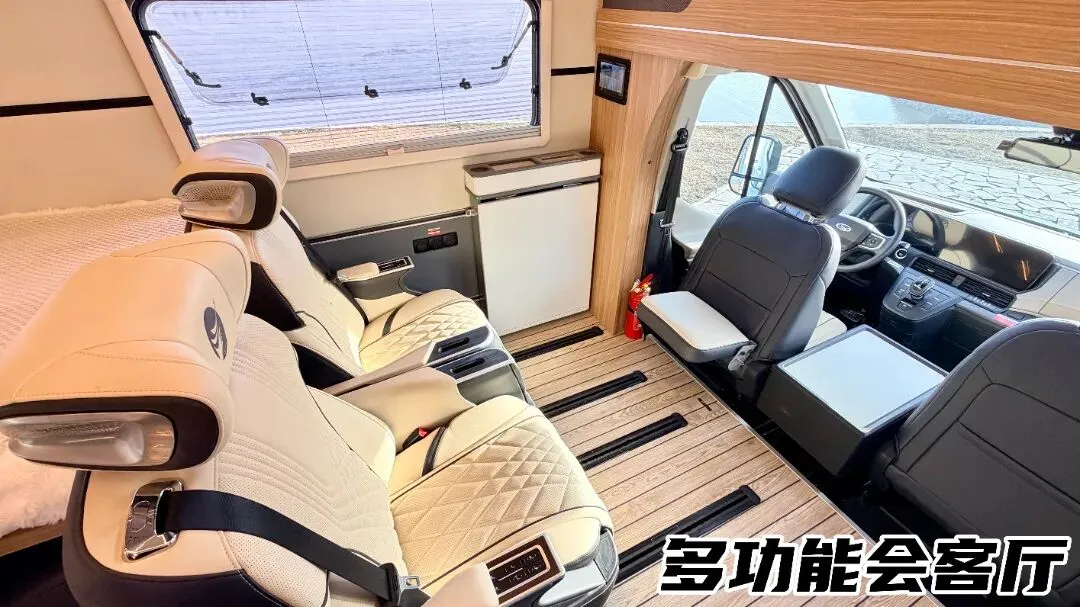 户外烹饪,随心解锁!遮阳棚下方配备2.65m超大厨台,尺寸充足适配各类操作需求,搭配折叠式水龙头、内外贯通式储物空间,收纳、使用更便捷。后置便携式柴油炉,燃料可直接取自车辆油箱,无需额外补充,轻松满足户外煎炒烹炸等多种烹饪需求,让旅途也能吃上热乎家常味,左下方增设166L房车专用冰柜,专门存放肉类、冷冻食品,内外分区设计,完美满足长途旅行的食材储存需求,让旅途也能充满烟火气。