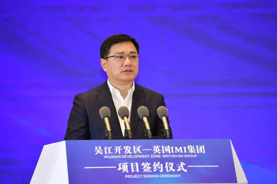 今天(11月16日)下午,英国IMI集团项目签约仪式在吴江开发区举行。区领导李铭、王国荣、王牟、陈建忠出席活动,吴江开发区党工委、管委会班子全体成员,同里镇、江陵街道及吴江开发区机关各部门主要负责人,英国IMI集团相关高管及部分银行代表参加活动。