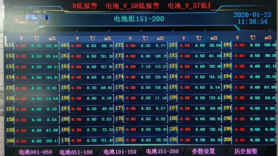 - 底部设置电池组分类入口+参数设置+历史报警功能按钮,符合现场人员快速切换查看的需求。