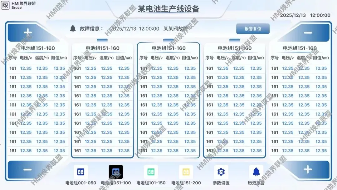 在工业自动化场景中,HMI界面是设备运维人员与设备交互的核心窗口,直接决定了操作效率、故障响应速度与现场管理便捷性。尤其是电池生产线这类对数据精度、监控实时性要求极高的场景,清晰直观的界面设计能大幅减少操作失误、提升运维效率。