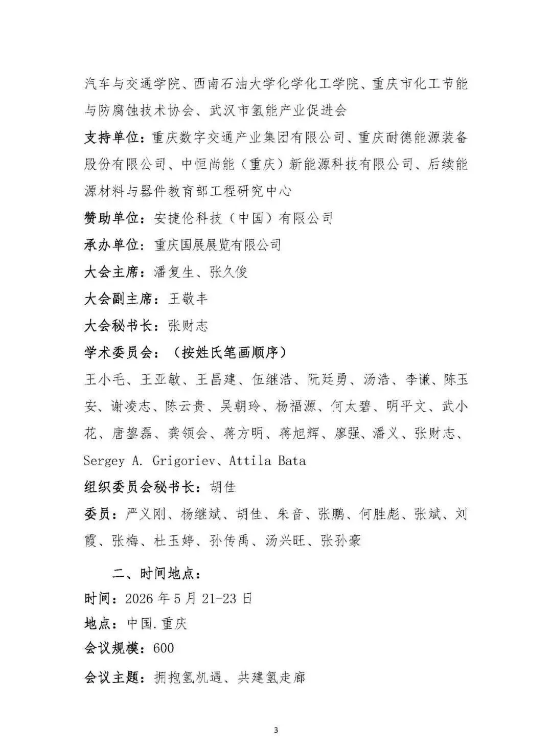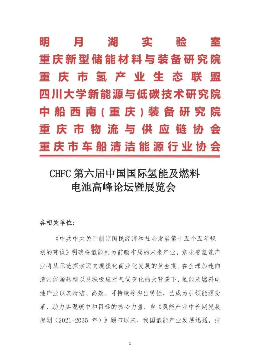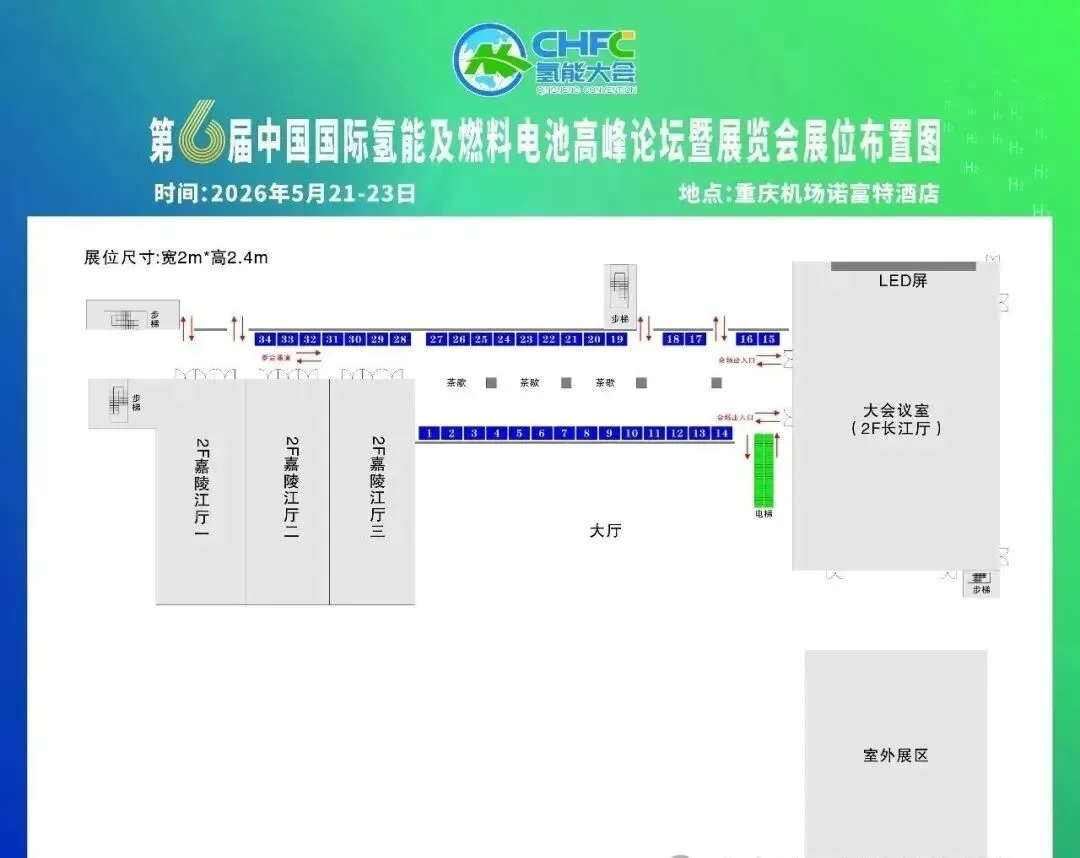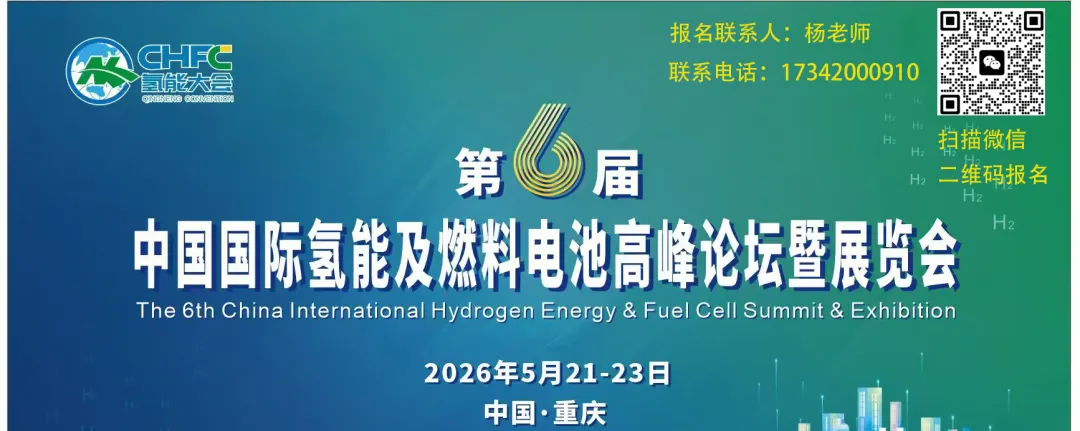 第六届中国国际氢能及燃料电池高峰论坛暨展览会将于2026年5月21-23日在重庆机场诺富特酒店举行,欢迎广大氢能同仁莅临交流!