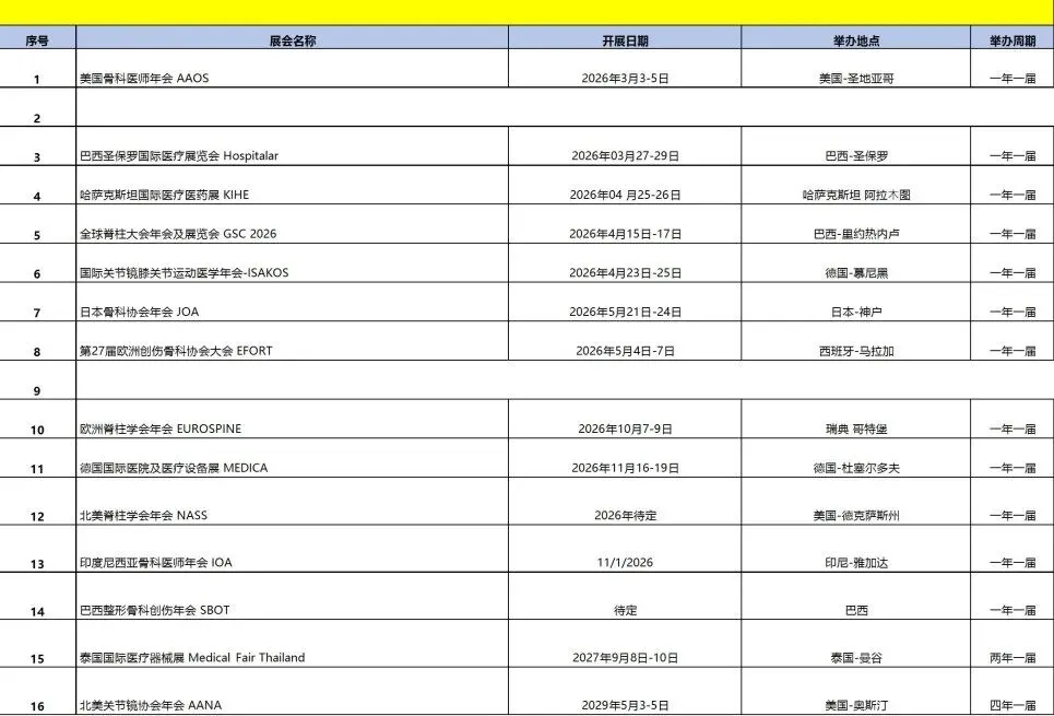 展商:全球头部(美敦力、强生DePuy、史赛克、施乐辉)+ 欧洲本土(B.Braun、joimax)+ 中国企业(富沃思、大博、春立等)