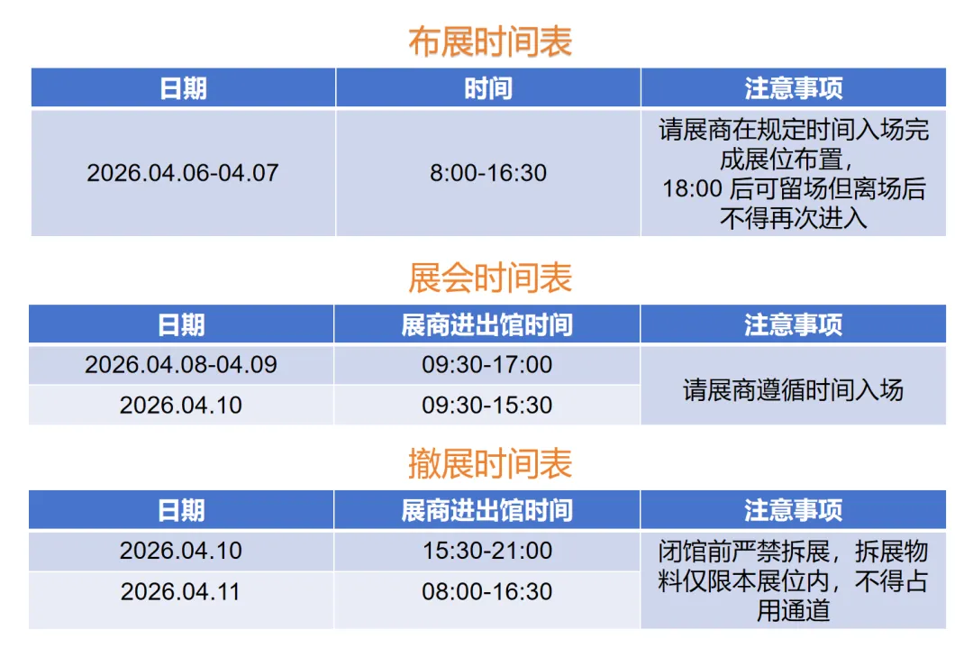 所有物料须在2026年4月12日16:00前清离展馆
