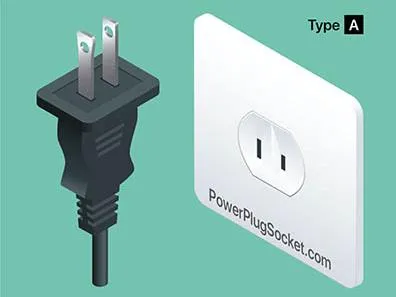 美国标准电源电压为 110 伏、60 赫兹。美式插座为两相扁头,三相为两扁一圆,可在出发前在国内购买美式转换插座。电压和插座下图