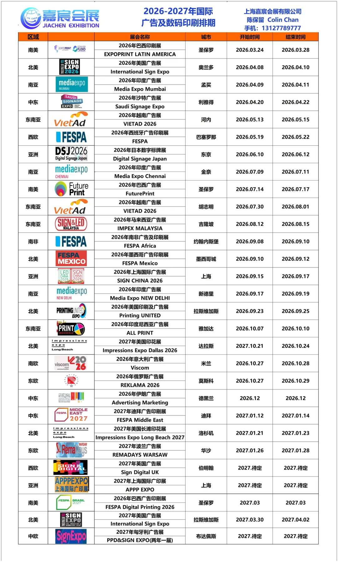 非常感谢大家加入由上海嘉宸会展有限公司组织的 2026 年4月8-10日美国国际广告展(INTERNATIONAL SIGN EXPO® 2026)参展团!