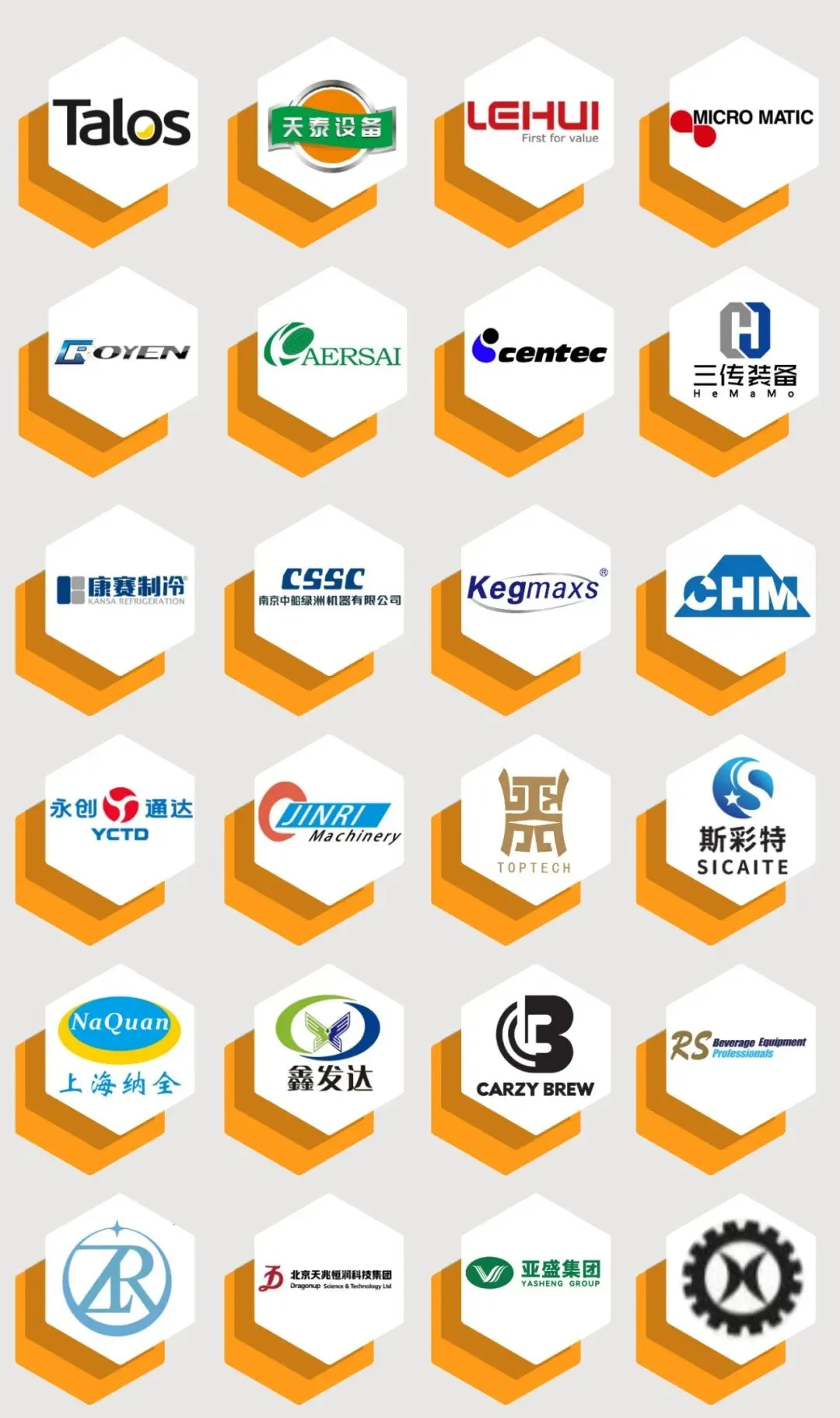 生产技术与设备:原料储藏设备;原料制备设备;水处理设备;麦汁制备设备;糖化发酵设备;过滤分离设备;灌装设备;封口、贴标设备;酒储配设备;包装材料和容器制品;辅助生产设备;控制系统;分析、清洗、处理设备;蒸馏设备;橡木桶;阀门、泵配件;家酿自酿设备。